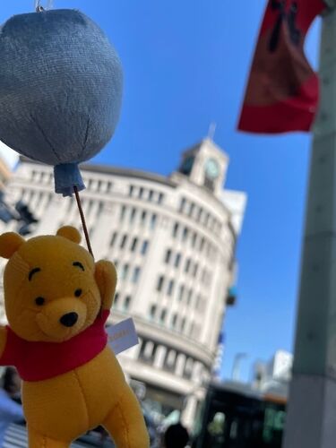 おはようございますʕ•ᴥ•ʔ現在 銀座のシンボルセイコー時計塔は史上初の衣替え中️✨なんと、文字盤がミッキーマウスになっているんですミッキーマウスのお誕生日11/18までの期間限定です。せっかくなので、プーも記念にパシャリ。✨空も飛んでみたよはちみつは…